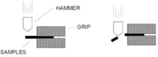 本测试使用一个特定质量的冲击锤,以特定速度击向由夹具固定的五个硫化橡胶试样。试样和夹具被冷却至规定的低温。冲击锤以规定速度撞击试样并继续向前运动。五个试样中有三个发生断裂所对应的温度,即称为该橡胶胶料的脆性温度